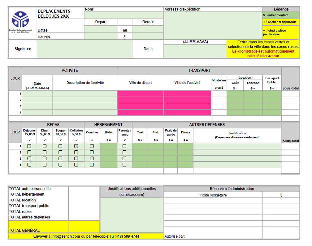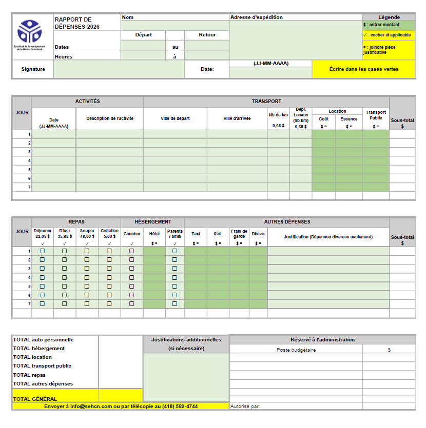 Choisissez le bon formulaire selon la nature de la réclamation. Pour les remboursements d’achats (Fonds EFFICOM, achats des délégués), choisissez le Formulaire de remboursement. Vous pourrez ensuite le remplir et le retourner au SEHCN.